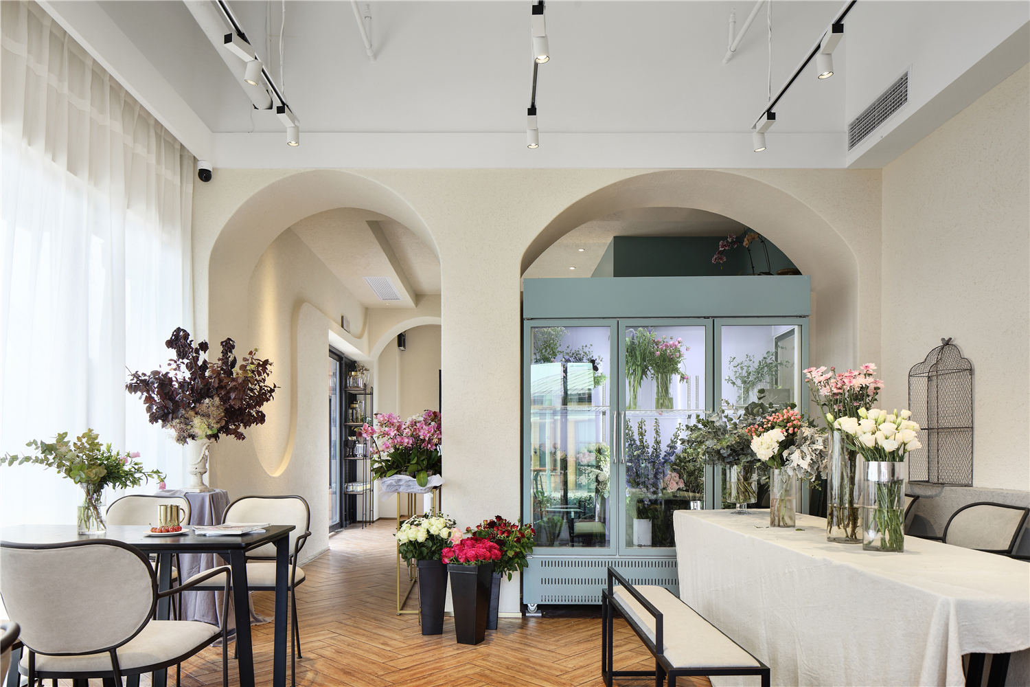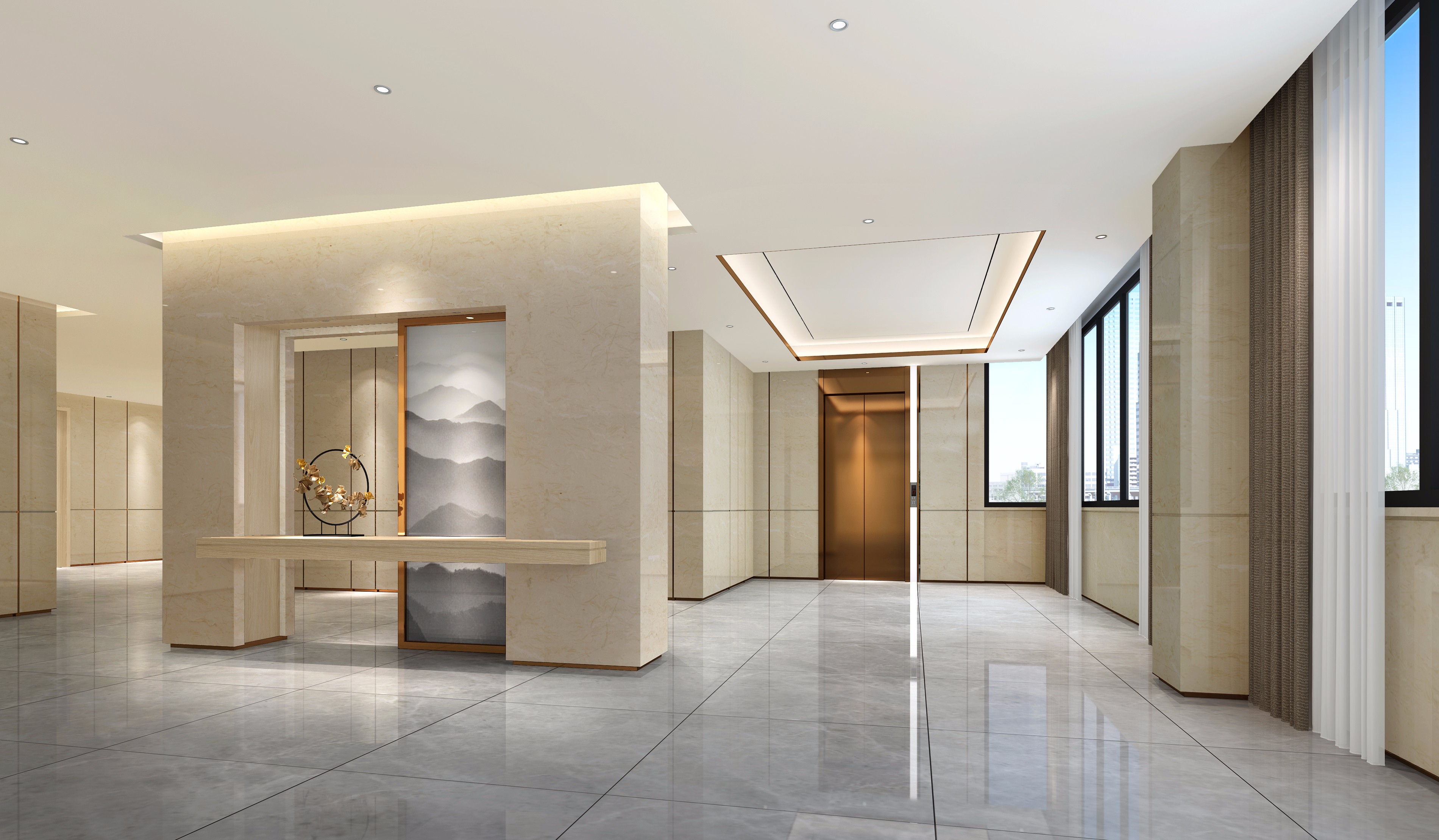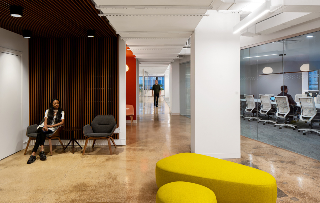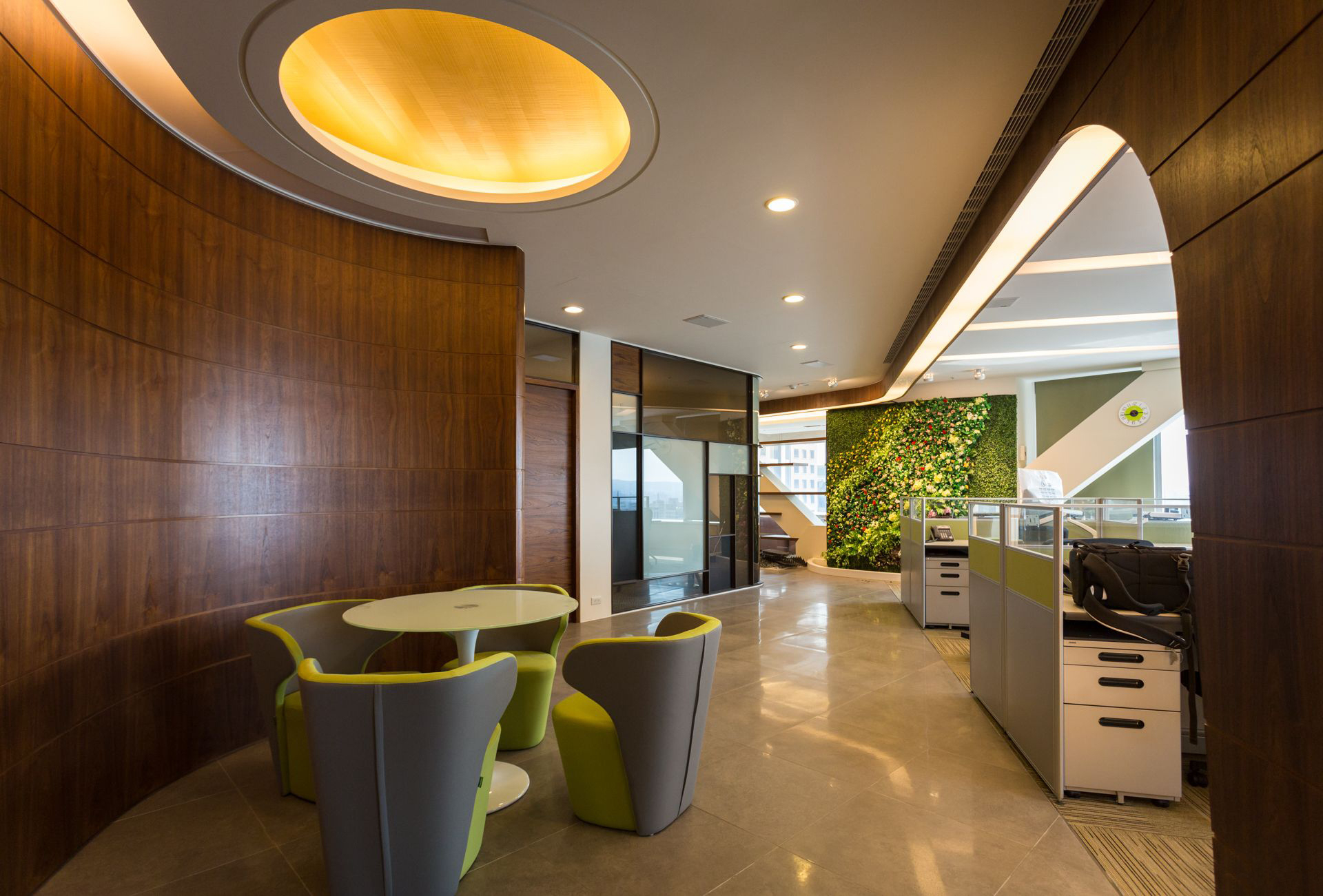 4300平米醫(yī)療公司辦公空間設(shè)計(jì)布局,平靜的色彩、柔軟的面料和以類似色調(diào)選擇的彎曲形式提供了所需的寬敞和平靜的氛圍。彎曲的墻壁從入口連續(xù)延伸,增強(qiáng)了空間的連續(xù)性,并通過在墻壁內(nèi)創(chuàng)建的彩色壁龕創(chuàng)建了咖啡店區(qū)域等功能區(qū)域。